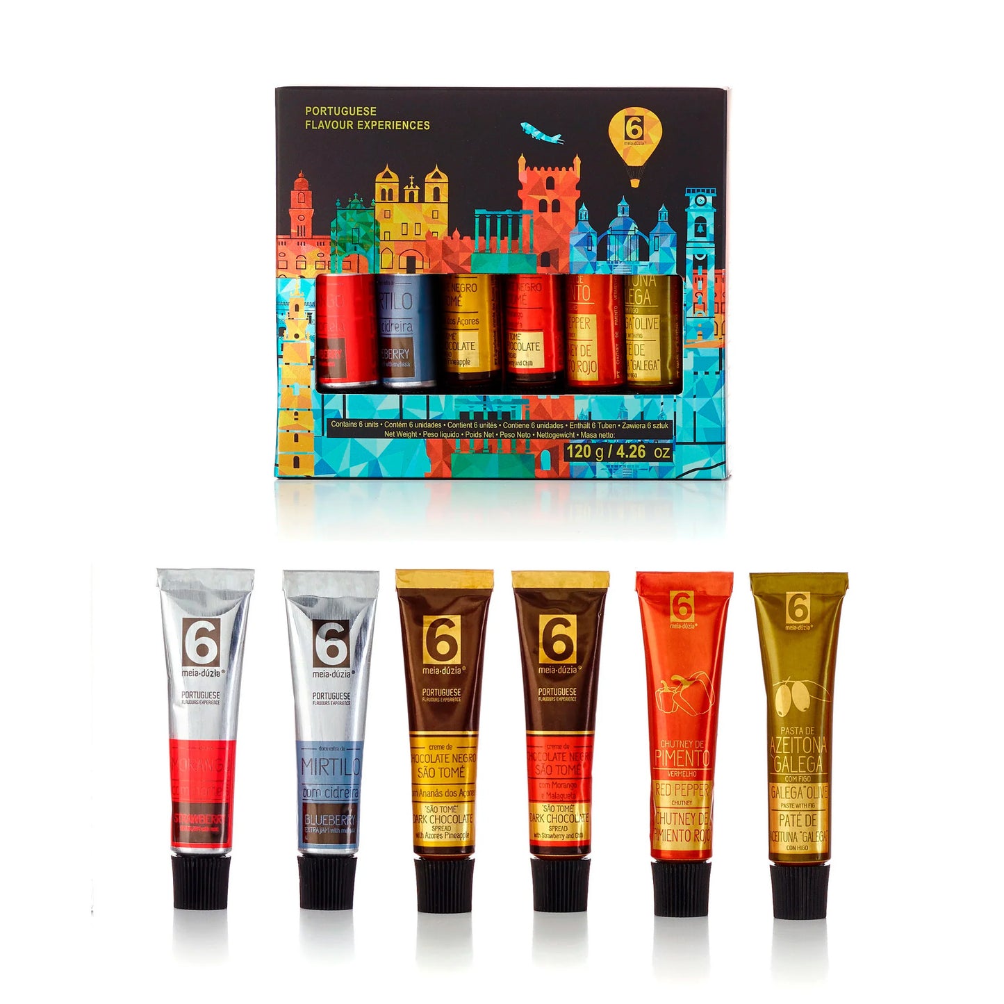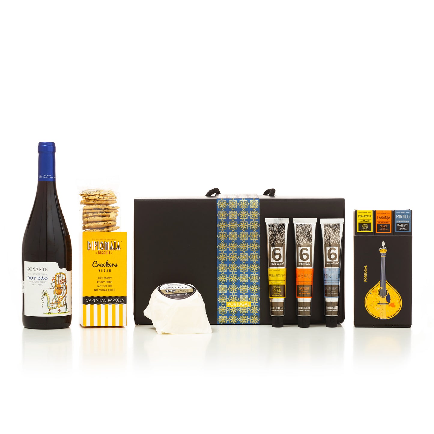 Ce coffret spécial de 3 saveurs – ICÔNES DU PORTUGAL – est un cadeau unique et original qui représente la culture et la gastronomie portugaises. Il contient des saveurs de différentes régions du Portugal : confitures traditionnelles, pâtes d’olives, crèmes au chocolat, huiles d’olive et liqueurs.