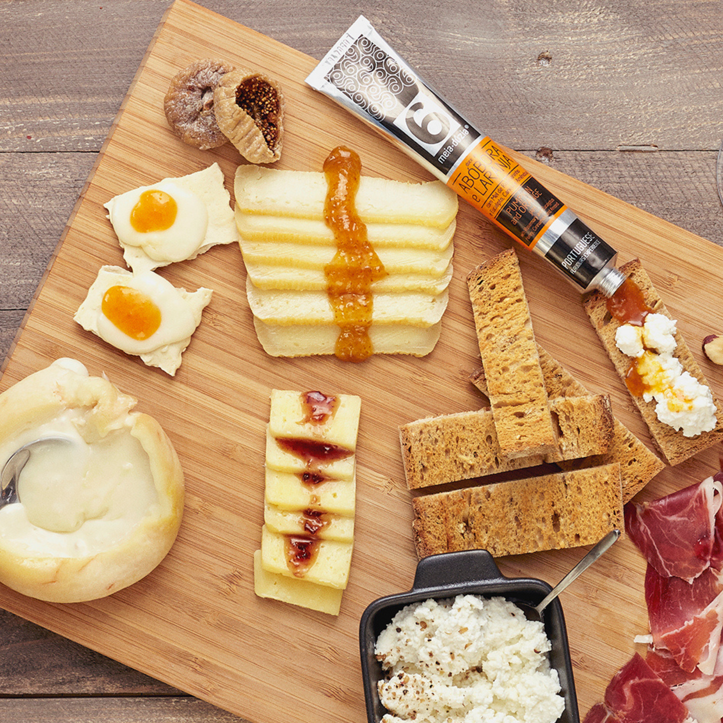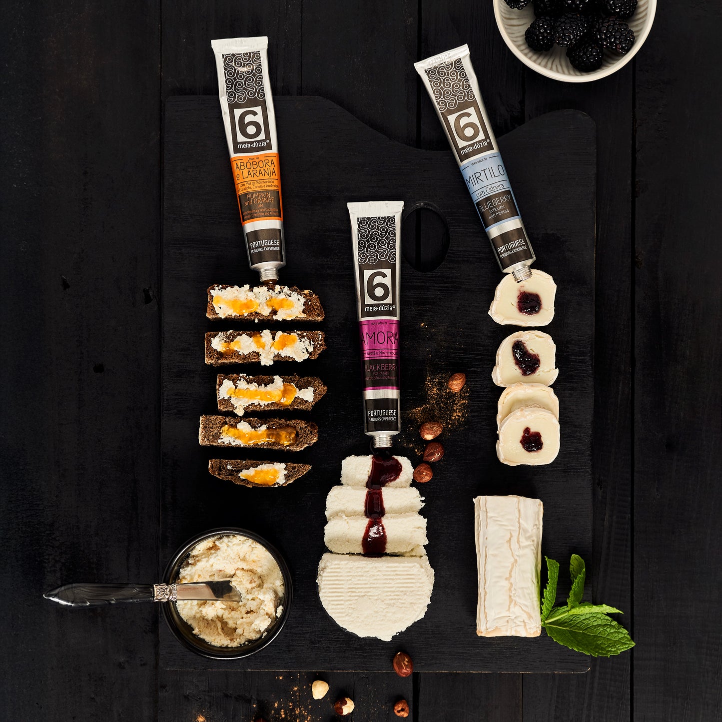 Para criar a sua tábua de queijos frescos, use 2 a 3 variedades de queijos, pão de centeio ou de milho, requeijão e harmonize com a nossa seleção de 3 doces genuinamente portugueses que fazem parte do PACK 3 Doces Ideal para Queijos Frescos.